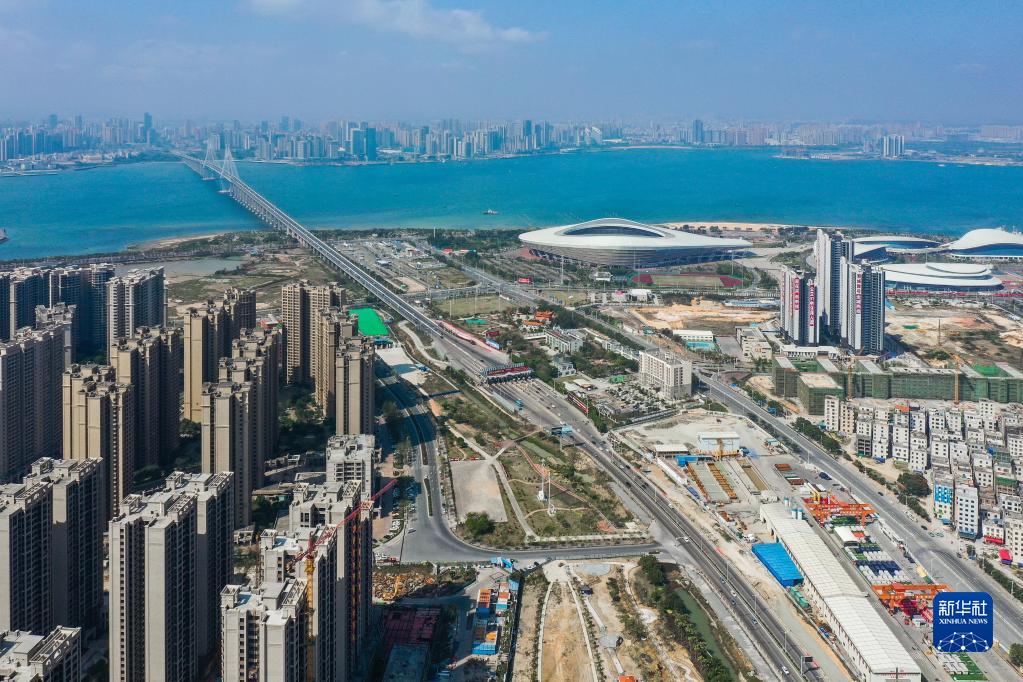 2023年2月28日,广湛铁路湛江湾海底隧道盾构区间“过海穿城”(无人机照片)。新华社记者 刘大伟 摄