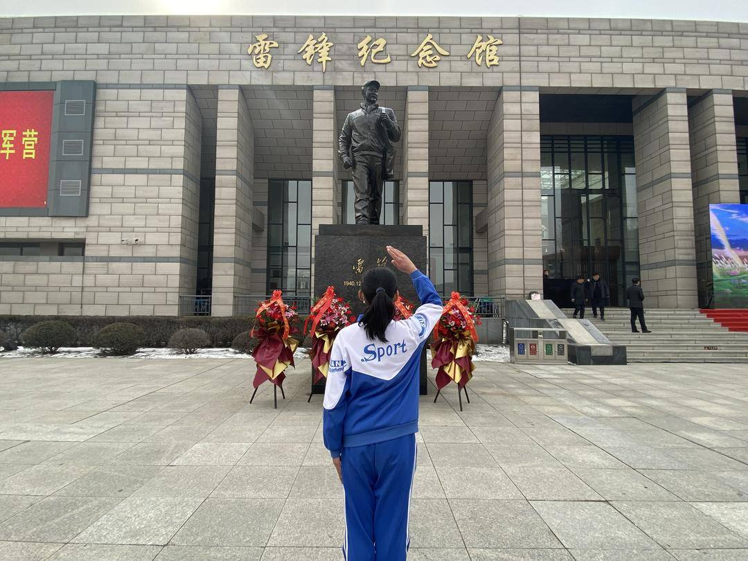 少先队员在辽阳雷锋纪念馆雷锋塑像前行少先队礼