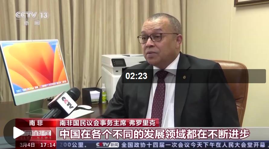 南非国民议会事务主席 弗罗里克:中国在各个不同的发展领域都在不断进步,尤其是对外开放和走向现代化。习近平主席提出的一些倡议都体现了共享繁荣、共同发展的主题,这也是中国为实现联合国可持续发展目标,作出的最主要成就之一。