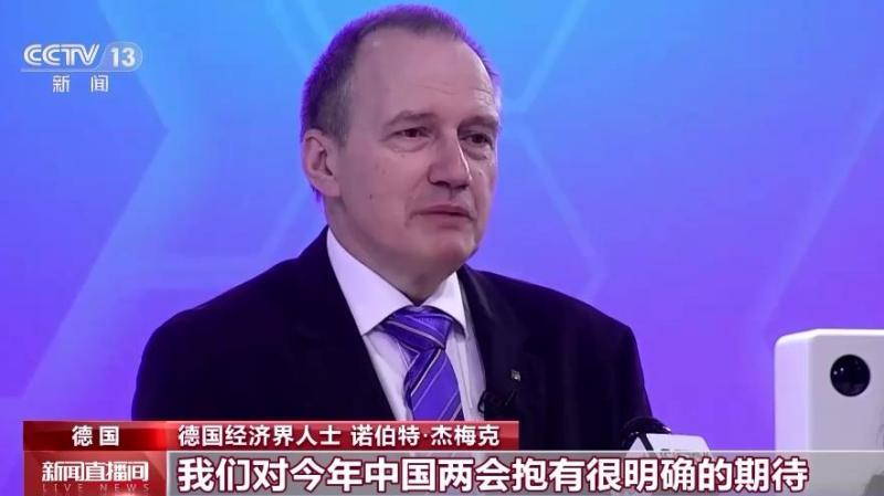 德国经济界人士 诺伯特·杰梅克:我们对今年中国两会抱有很明确的期待。因为两会出台的举措、作出的决定是我们下一步加大对华投资的重要参考,中国经济持续增长的动能背后是政府明确的规划。
