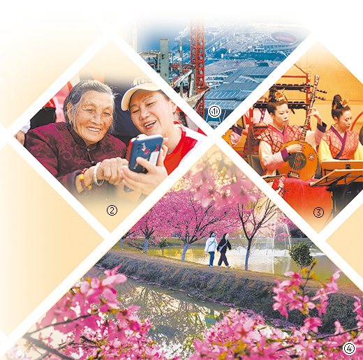 图④:日前,人们在湖南省常宁市罗桥镇樱花园赏花游玩。