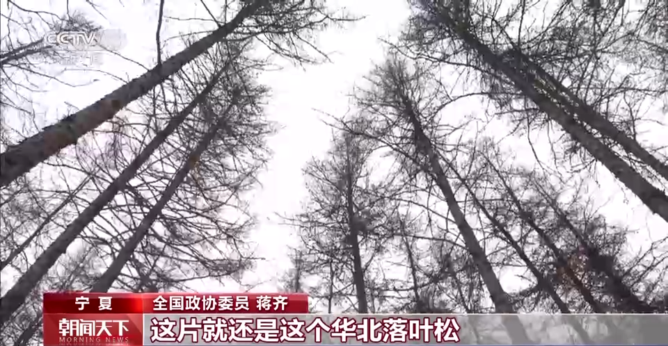 全国政协委员 宁夏农林科学院林业与草地生态研究所研究员 蒋齐:这个林子每年都在变,咱们也经常过来看一看,这片就还是这个华北落叶松,那么现在怎么样表现的?