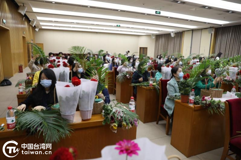 中央台办女干部职工“三八”国际妇女节插花实践活动(中国台湾网 王大勇 摄)