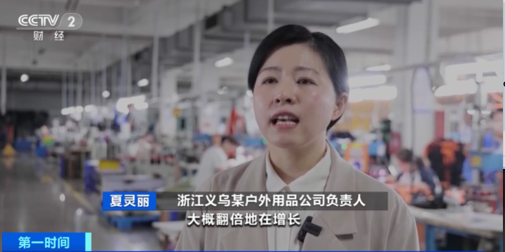 浙江义乌某户外用品公司负责人 夏灵丽:今年订单增量来得很突然,大概翻倍增长,我们有一个美国客户反馈,他之前的订单有一些积压,但是随着现在的复苏,库存的产品已经供不应求了。