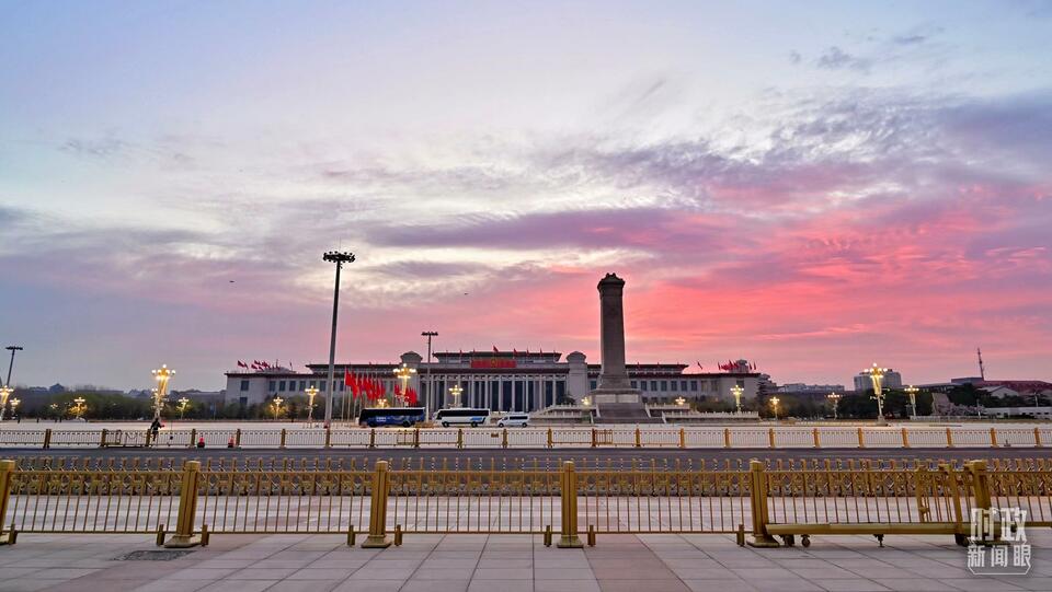 △3月13日清晨,北京迎来瑰丽朝霞。(总台记者孙楠拍摄)