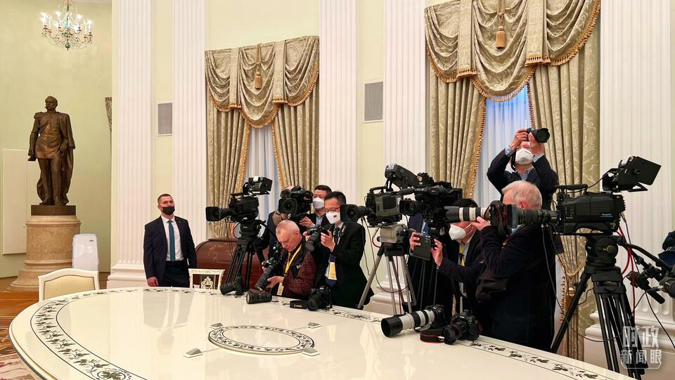 △会见开始前,现场的摄影记者。(总台央视记者程铖拍摄)