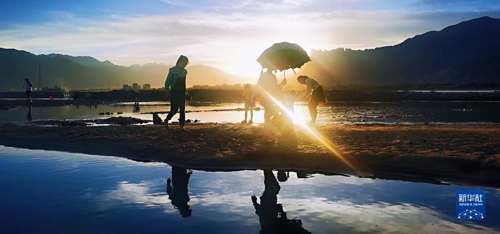 拉萨市民在河边戏水(2022年7月7日摄)。新华社记者沈虹冰 摄