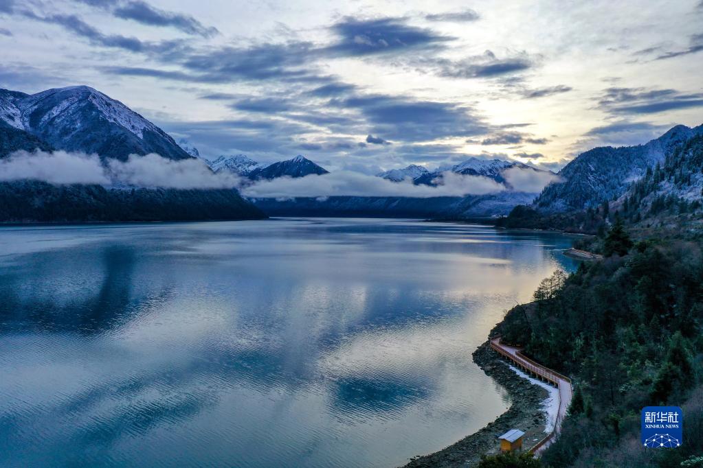 这是雪后拍摄的巴松错(无人机照片,2023年3月19日摄)。新华社记者姜帆 摄