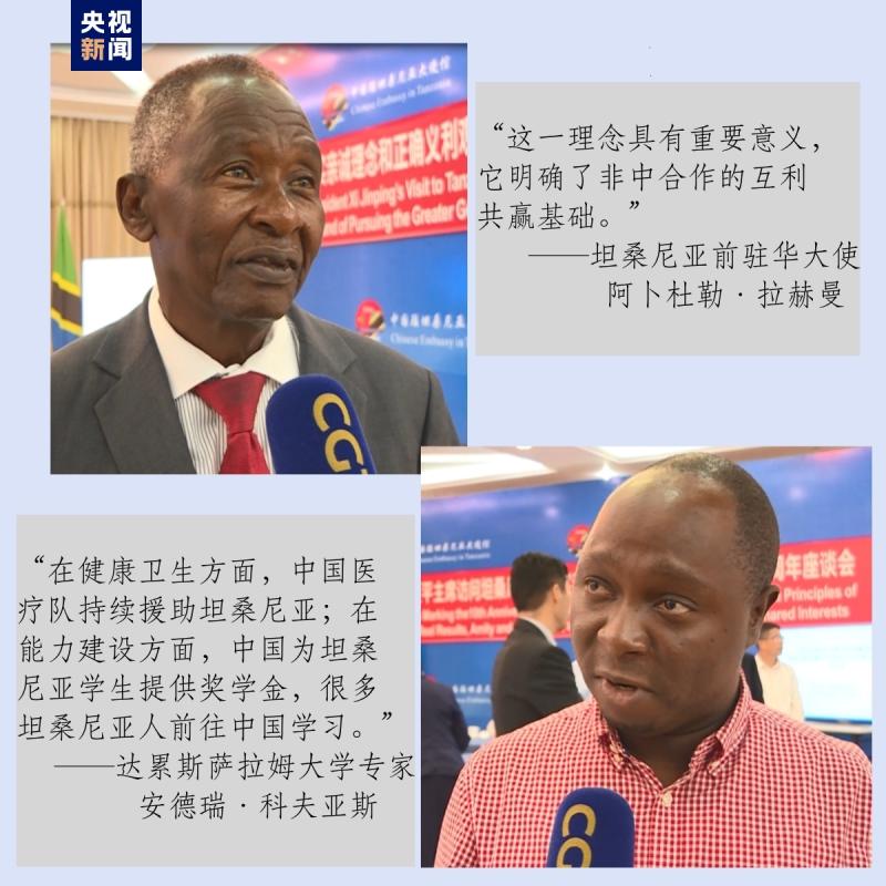 坦桑尼亚前驻华大使阿卜杜勒·拉赫曼表示,“这一理念具有重要意义,它明确了非中合作的互利共赢基础”;达累斯萨拉姆大学中非关系专家安德瑞·科夫亚斯称,“中坦在多个领域开展了大量合作,在健康卫生方面,中国医疗队持续援助坦桑尼亚;在能力建设方面,中国为坦桑尼亚学生提供奖学金,很多坦桑尼亚人前往中国学习”。
