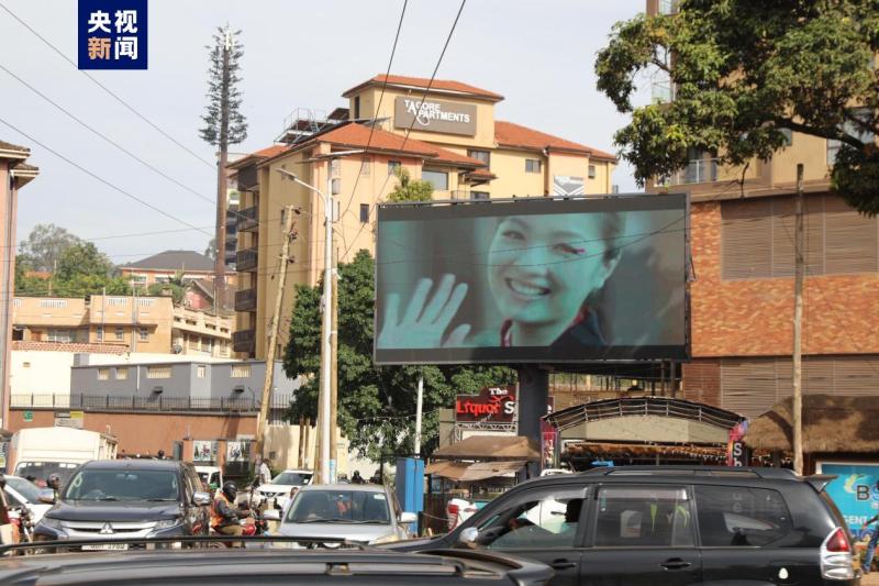 △乌干达首都坎帕拉市中心户外大屏正在播放总台宣传片
