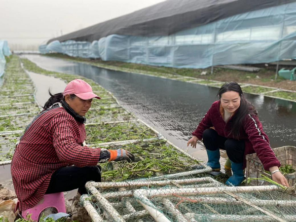 姚路路(右)正在栽植水芹种苗(央广网发 受访者供图)