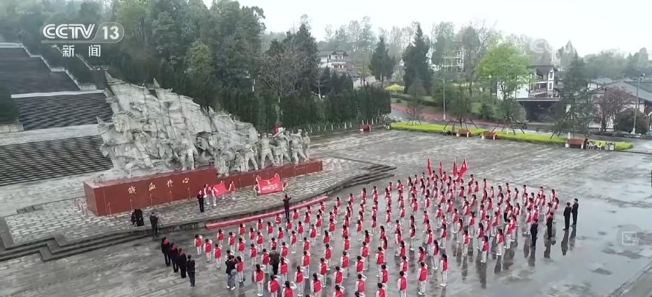 在川陕革命根据地红军烈士陵园,少先队员们为无名烈士敬献红领巾,并用为无名墓碑上的红星描红补色的方式,寄托对革命先烈的哀思。