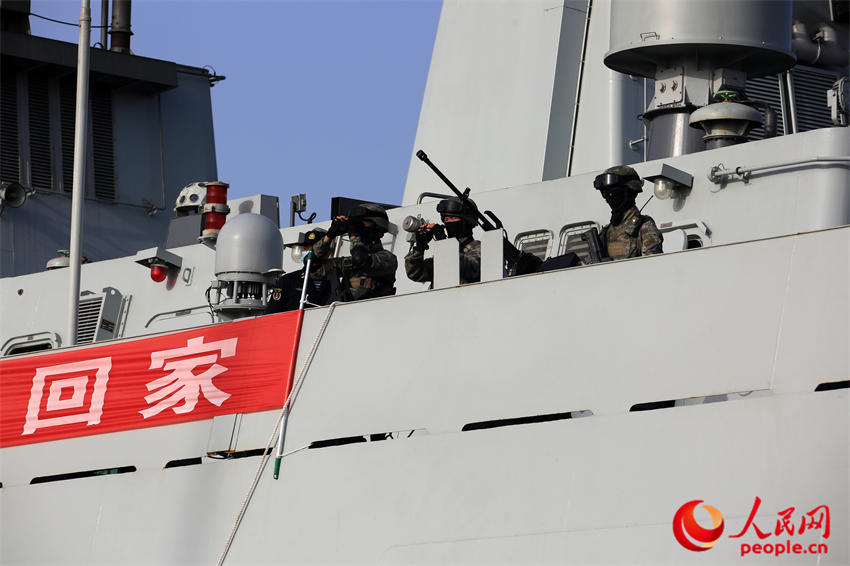 准备撤离的人员在中国驻苏丹大使馆工作人员和海军官兵引导下,在码头进行登记和安检后登舰,撤离过程安全、有序。随后两艘军舰驶离苏丹港,于当地时间27日10时许(北京时间27日15时许),先后靠泊沙特吉达港,完成人员转接后,再次迅即奔赴苏丹港,执行后续接运任务。(唐思宇、张懋瑄、吴亢慈、丁家兴、刘青尧、王鹏、李怡诺摄影报道)
