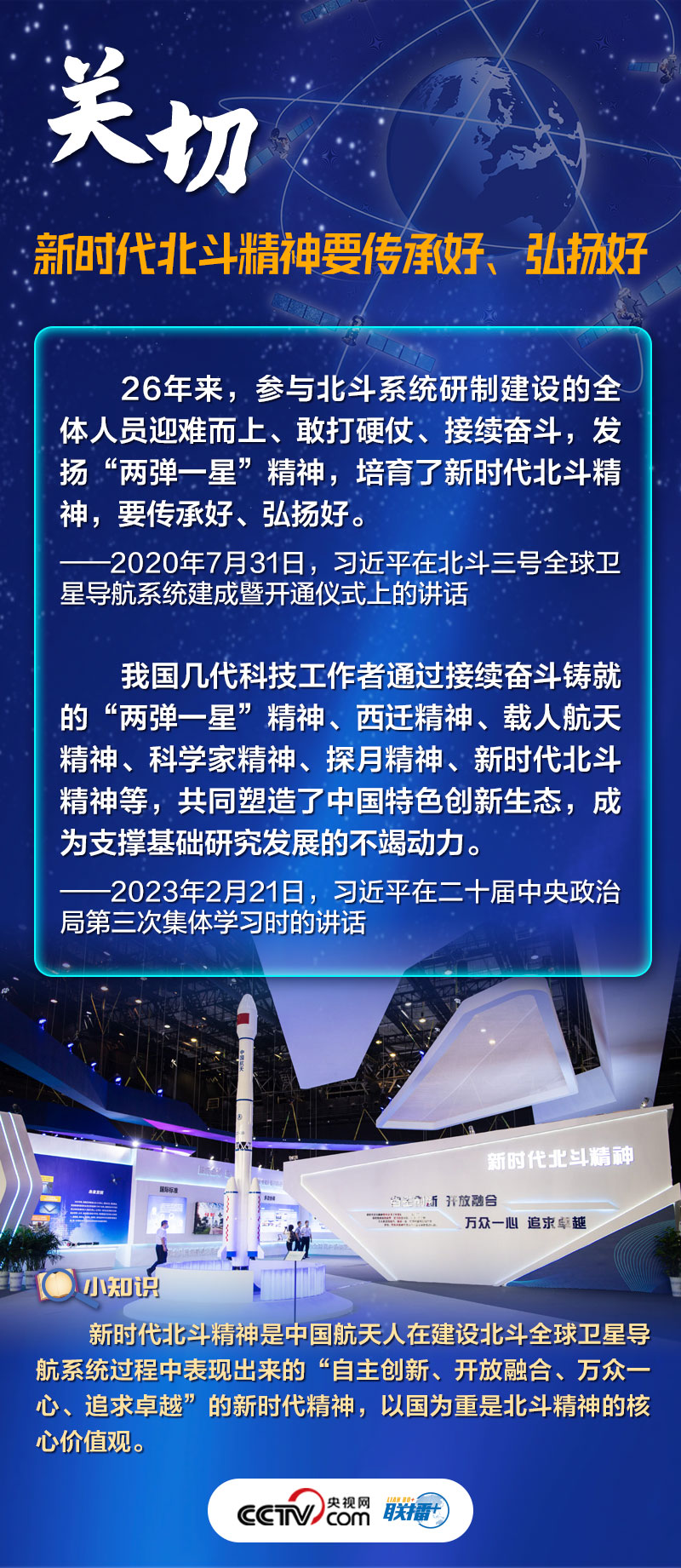 北斗系统是党中央决策实施的国家重大科技工程,习近平总书记对其始终牵挂,曾在多个重要场合点赞北斗导航系统及其团队,强调“北斗系统造福中国人民,也造福世界各国人民”。