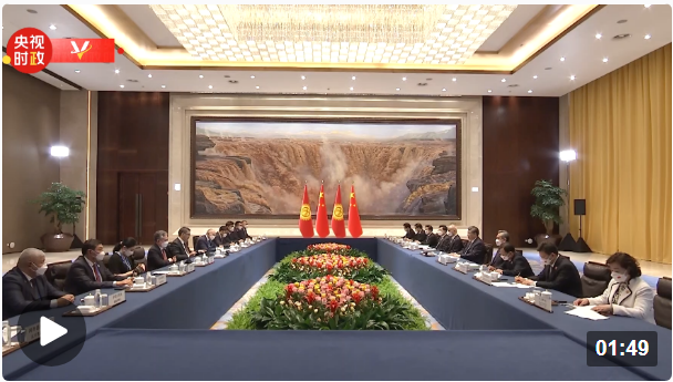 5月18日,国家主席习近平在西安同来华出席中国—中亚峰会并进行国事访问的吉尔吉斯斯坦总统扎帕罗夫会谈。