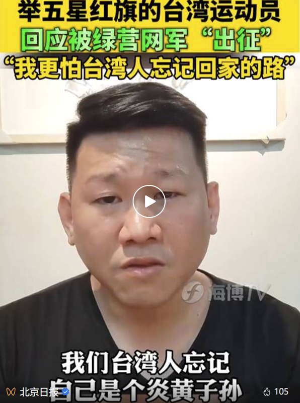 近日,2023年亚太大师运动会上,来自中国台湾的跆拳道选手李东宪获得一枚铜牌。他在领奖台上展示五星红旗,被无数网友点赞,却也因此遭台湾绿营“网暴”。举五星红旗运动员回应遭绿营网军谩骂,他说对此并不在意:“我怕的是台湾人忘记了自己的历史,忘了自己的母亲,更怕台湾人忘记回家的路。”