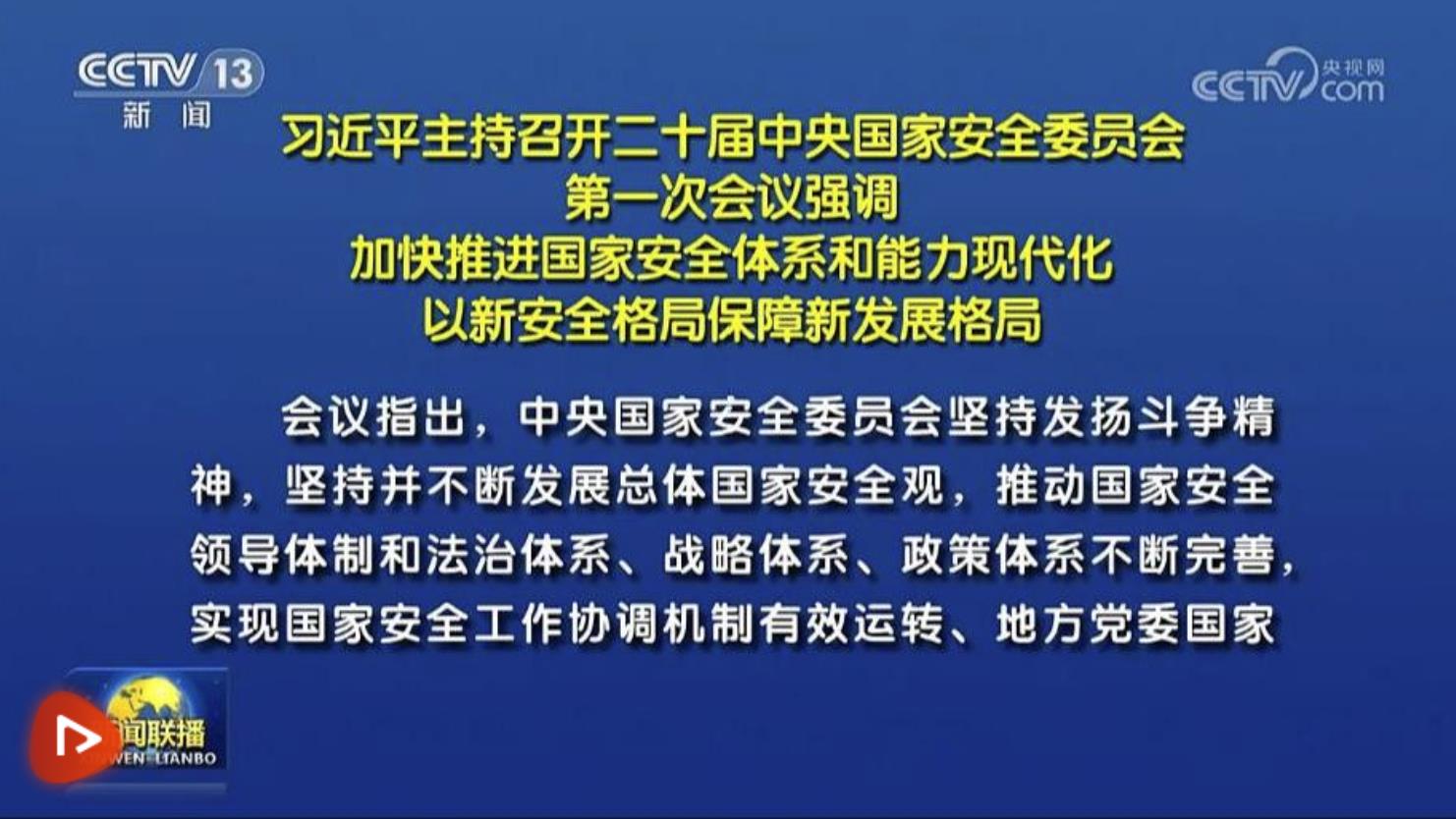 习近平主持召开二十届中央国家安全委员会第一次会议强调 加快推进国家安全体系和能力现代化 以新安全格局保障新发展格局