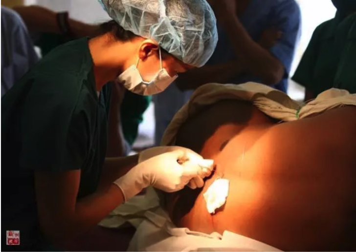 2010年11月12日,“和平方舟”号医院船麻醉师盛睿芳对沁的母亲实施麻醉,准备剖腹产。新华社记者琚振华摄