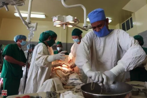 2010年11月12日,中孟两国医护人员协作实施手术。新华社记者琚振华摄