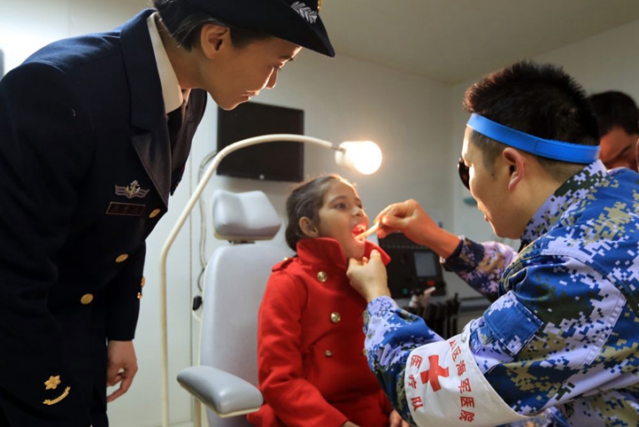 2019年12月9日,在“和平方舟”号医院船上,口腔科医生给沁做检查。新华社发(吴炜权 摄)