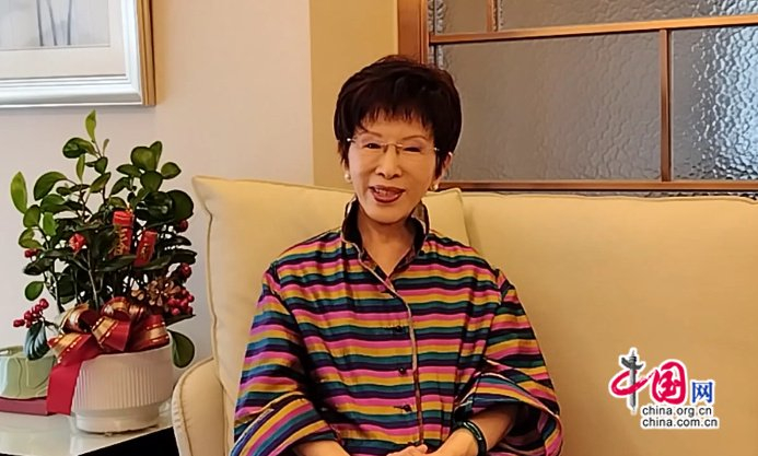 图为中国国民党前主席、中华青雁和平教育基金会董事长洪秀柱视频致辞。