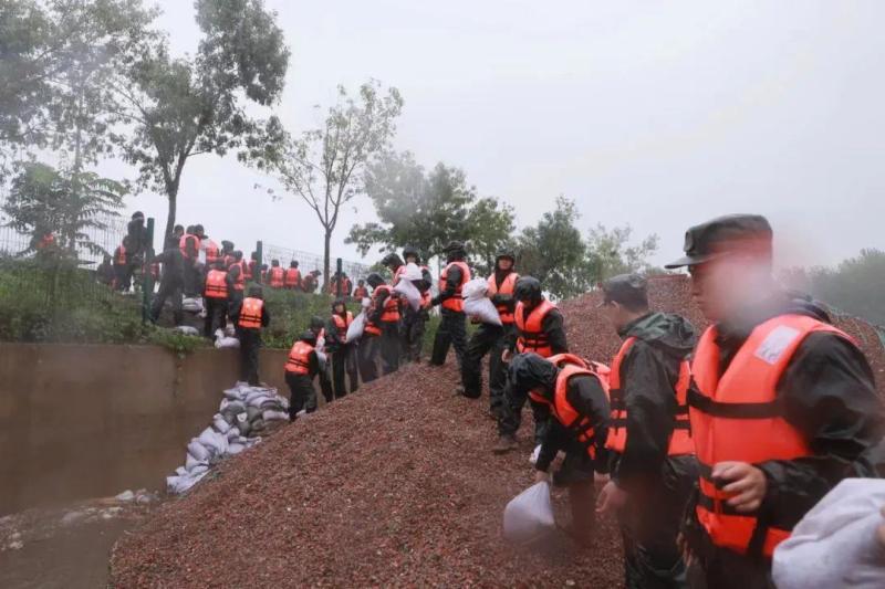 官兵们星夜出动,于凌晨2时许抵近房山琉璃河镇。大雨倾盆,武警官兵挥动铁铲,借助推土机、装载机等装备,在河床低洼地域迅速垒筑堤坝,防止河水暴涨,出现漫灌危险。