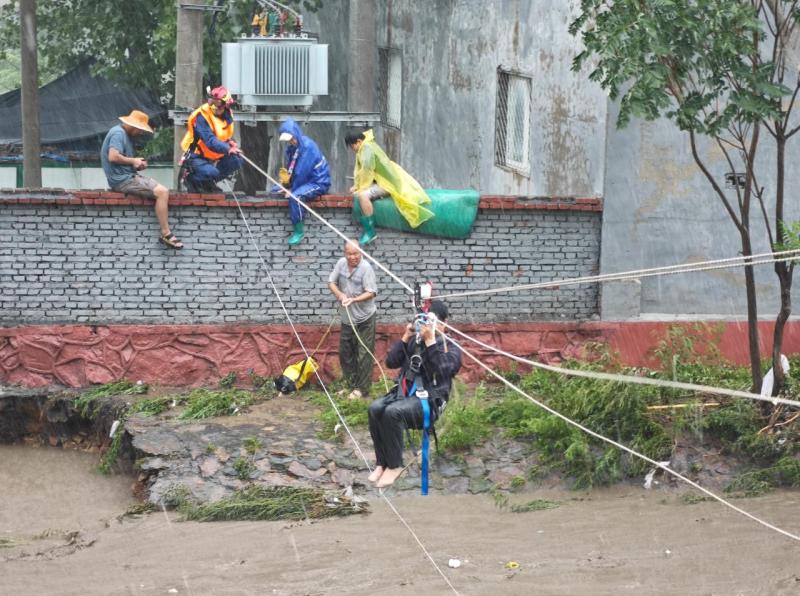 现场,水已经漫过被困人员所处的房屋屋顶,5名群众被困在高处的墙头,其中还有1名儿童。消防救援人员到场后,迅速利用绳索搭建救援通道。15分钟后,绳桥架设完毕,消防救援人员对被困群众展开救援。14时10分左右,救援任务成功完成,被困群众均被转移到安全地点。