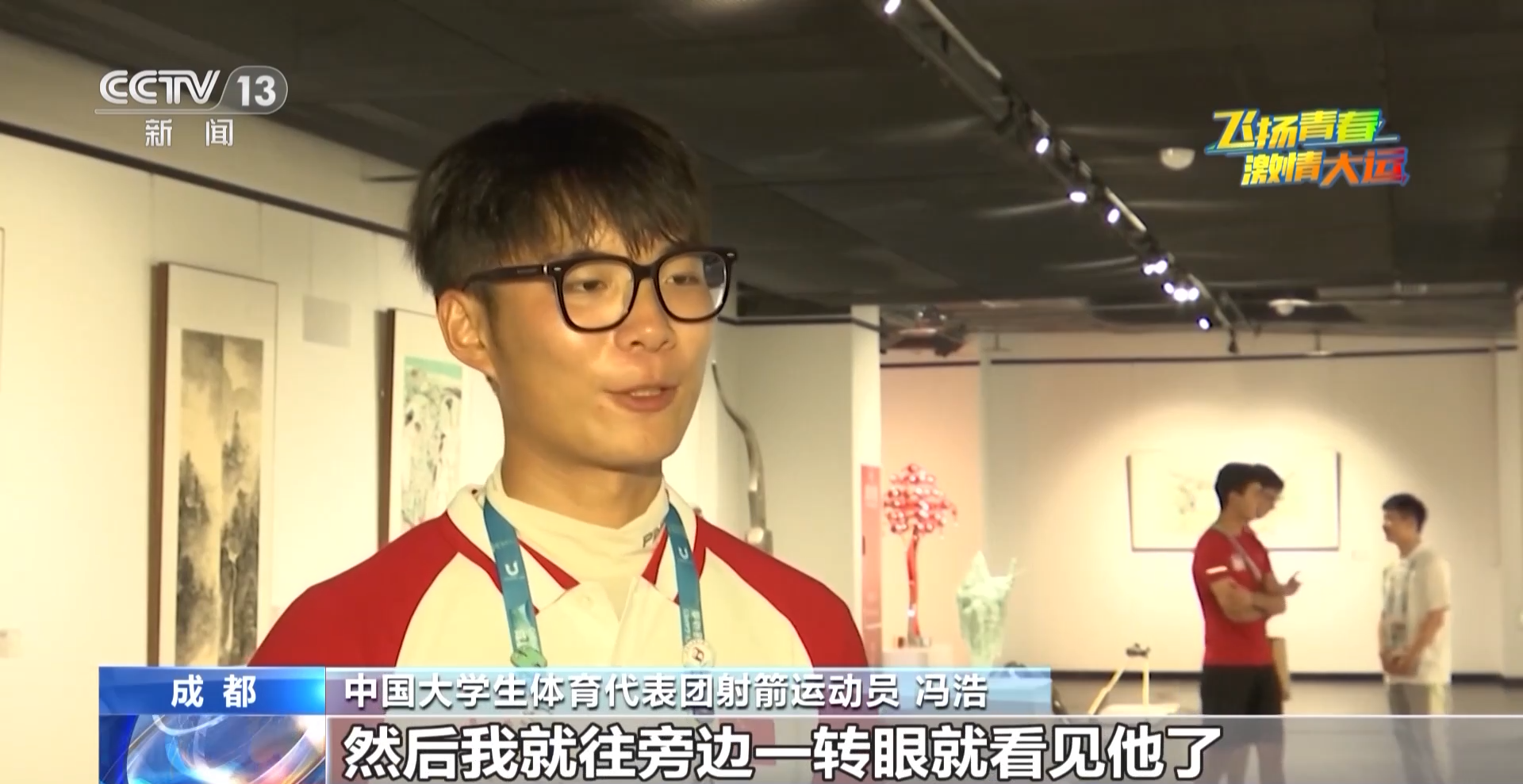 中国大学生体育代表团射箭运动员 冯浩:我第一天来比赛的时候,我往旁边一转眼就看见他了。