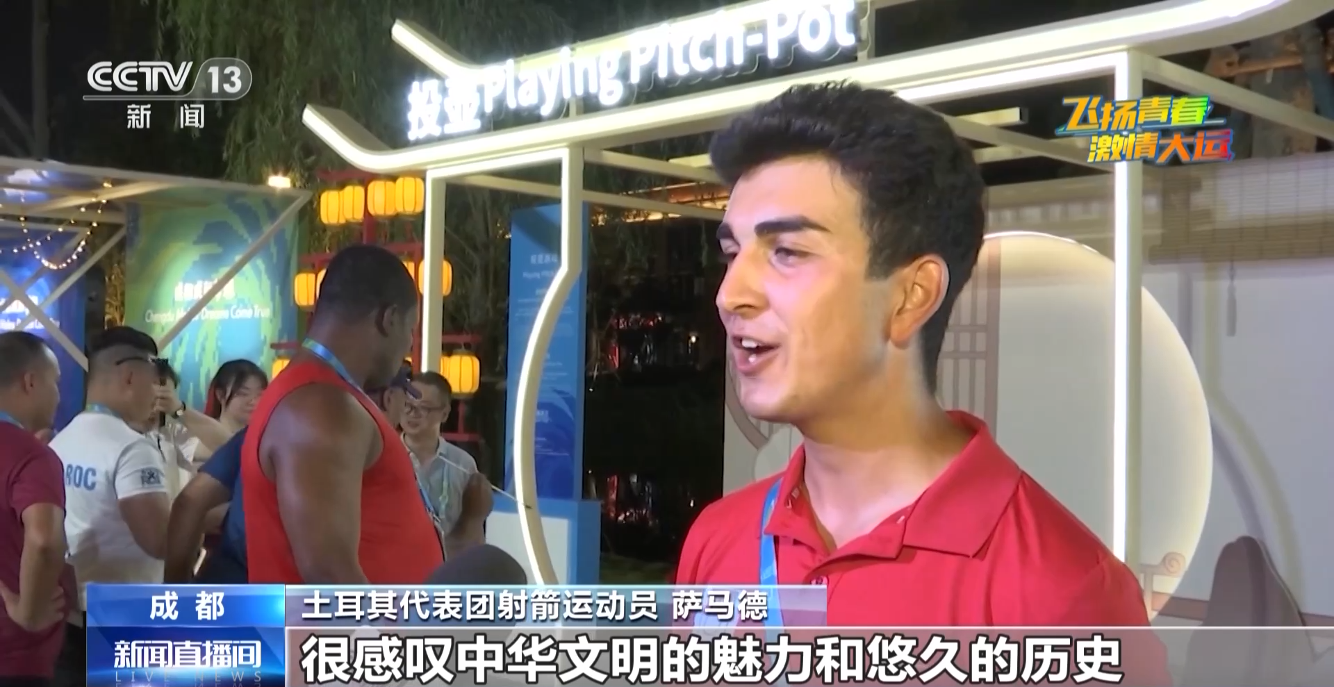 土耳其代表团射箭运动员 萨马德:冯浩告诉我,投壶是古代射箭演绎过来的一种传统体育项目,这激发了我的想象力,很有趣,很感叹中华文明的魅力和悠久的历史。