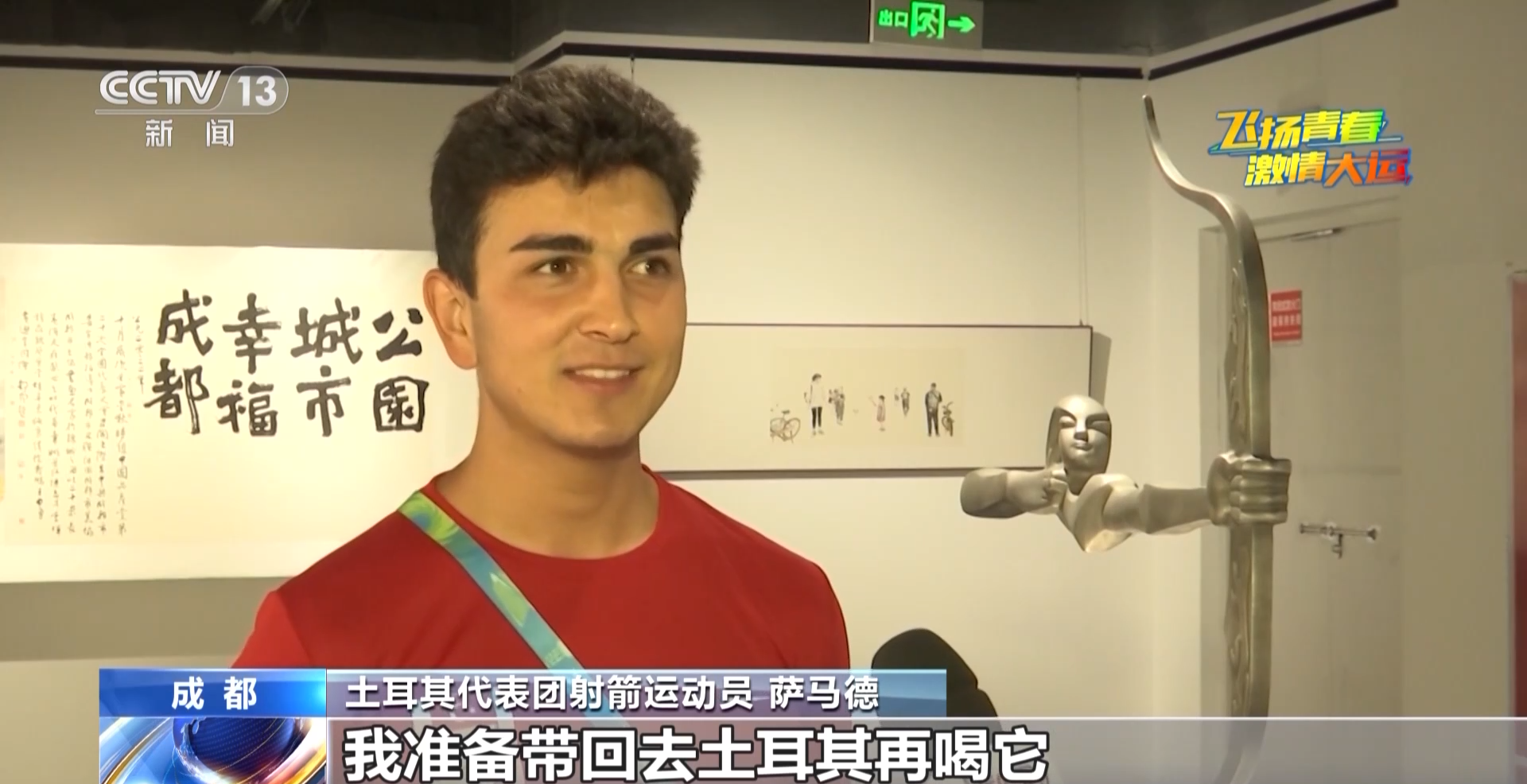 土耳其代表团射箭运动员 萨马德:冯浩送了我一份惊喜礼物,中国茶。我准备带回去土耳其再喝它。细细品味茶的味道,会让我回忆我们在成都大运会共度的美好时光。