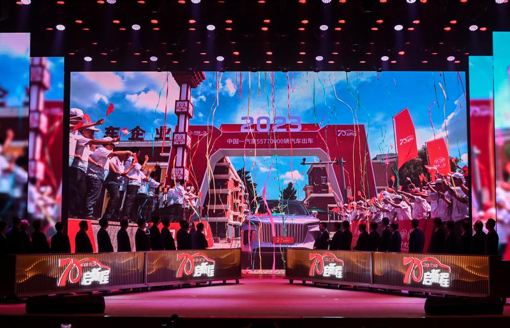图为7月15日,一汽生产的第5577万辆汽车出车仪式在中国一汽成立70周年庆祝大会上举行。新华社记者颜麟蕴 摄