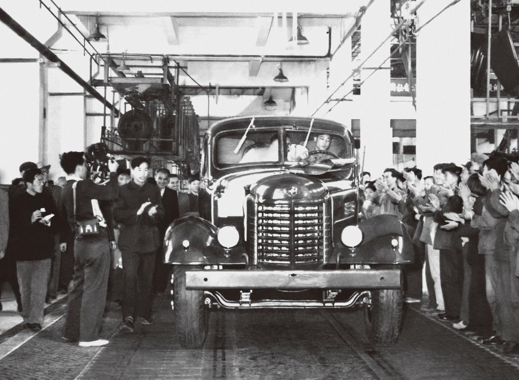 图为1956年7月13日,第一辆解放牌汽车驶下装配线(资料照片)。新华社发
