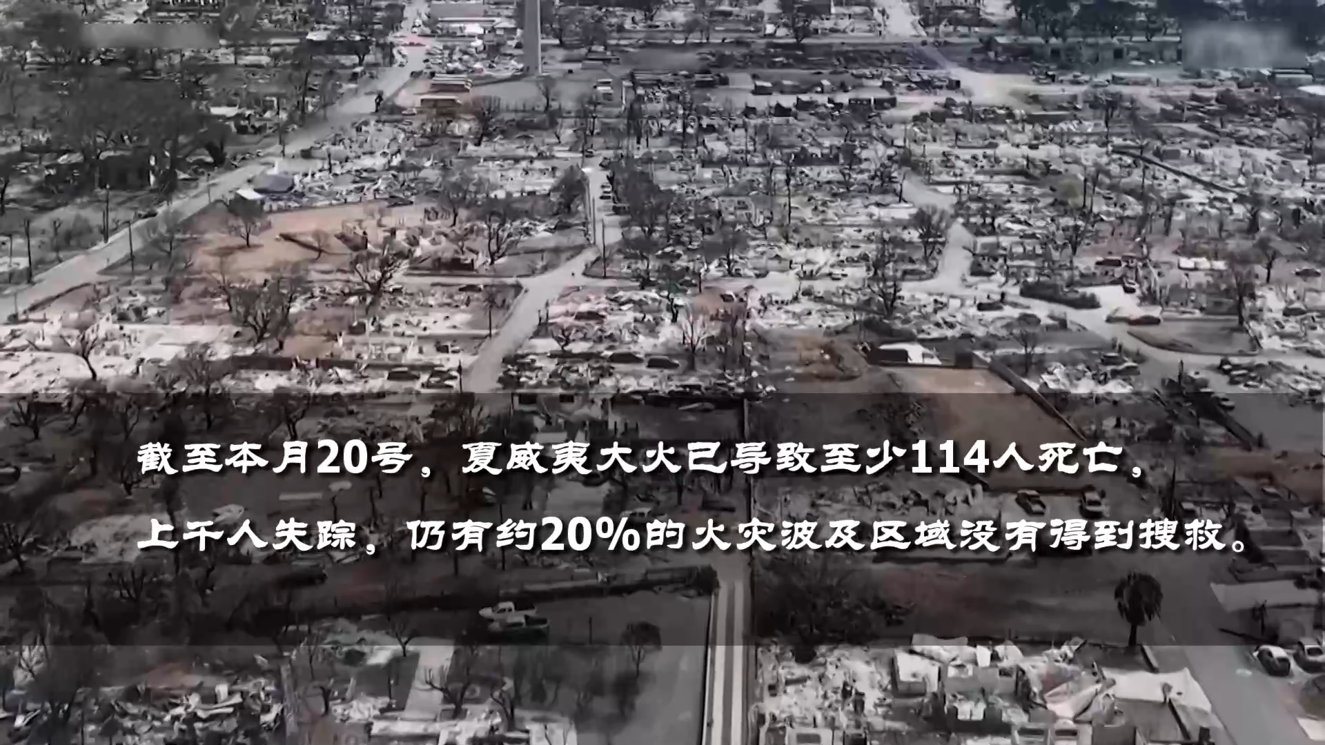 最新数据显示,夏威夷大火已导致至少111人死亡,上千人失踪,仍有约60%的火灾波及区域没有得到搜救。