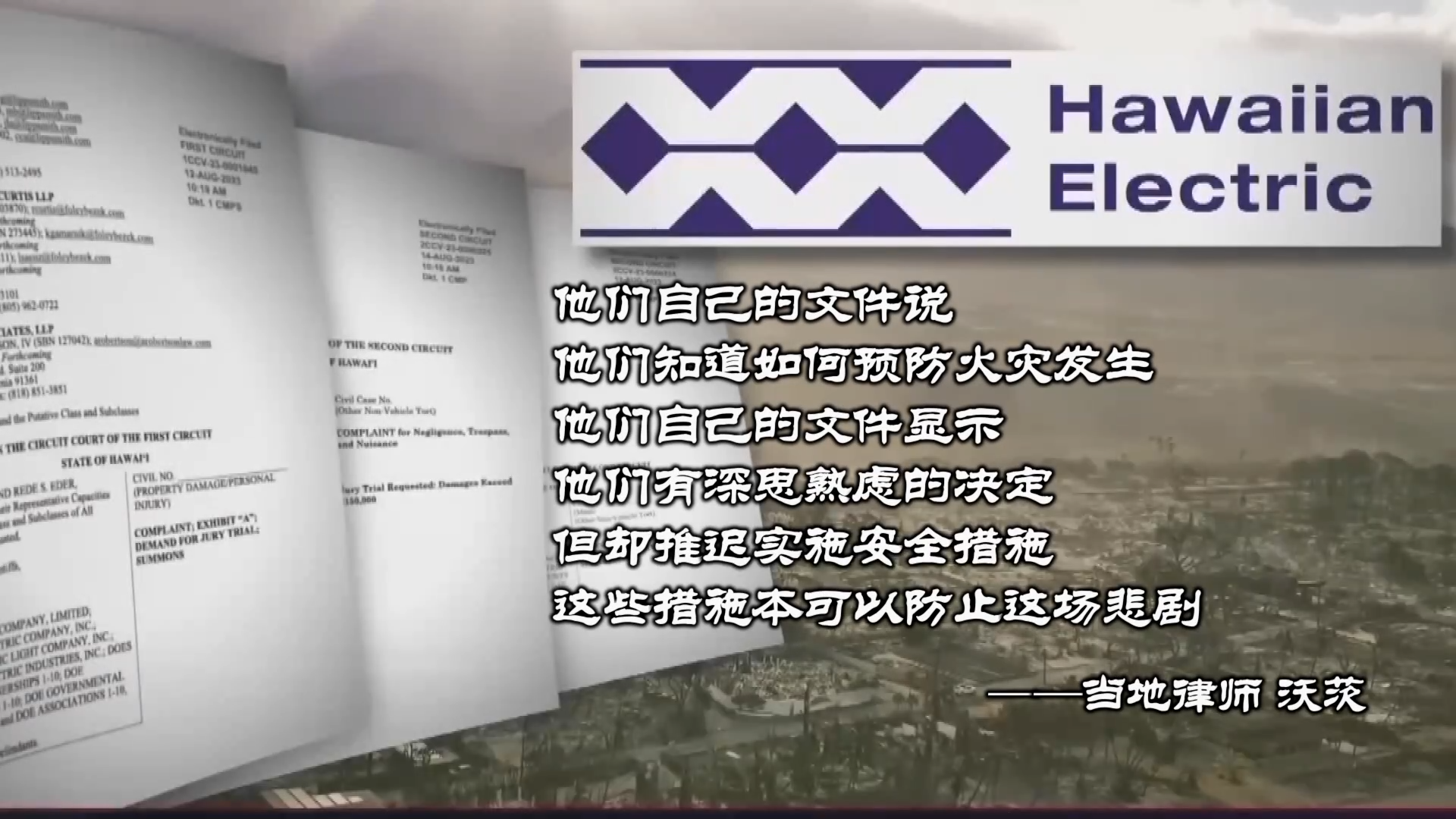 律师 辛格尔顿:鉴于我们的所见所闻,我的确认为毛伊岛政府和夏威夷州检察长有理由调查这起事件是否存在过失犯罪。如果有,我希望他们能进一步追责。