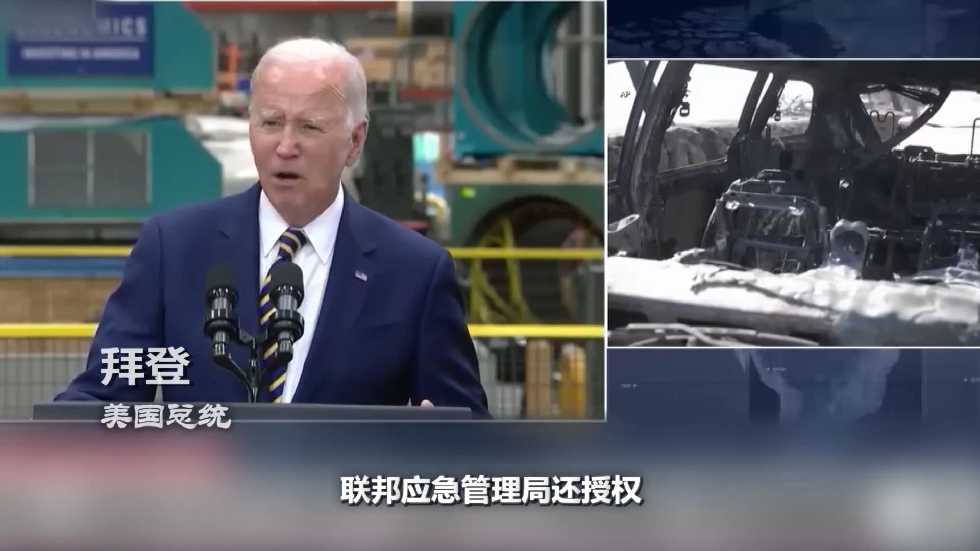美国总统 拜登:军用直升机参与了“大岛”的灭火工作,因为“大岛”多处火苗仍未被扑灭。