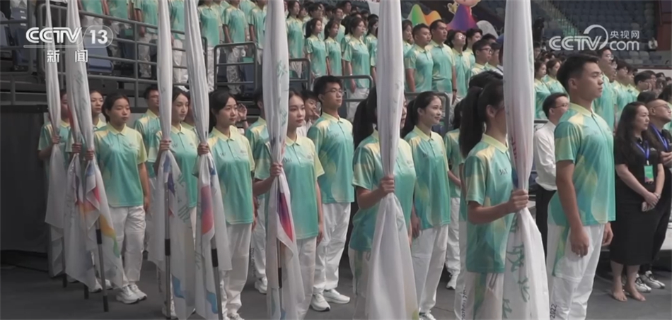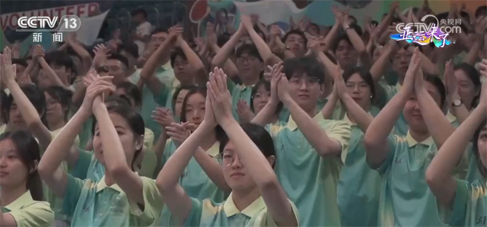总台记者 李筱:今天上午,在浙江大学紫金港校区体育馆,1800名赛会志愿者代表在现场向全世界发出邀约。现场,“小青荷”赛会志愿服务队持旗出征,标志着杭州亚运会、亚残运会志愿服务工作全面转向冲刺赛时志愿服务阶段。