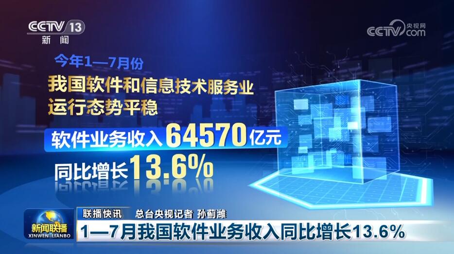 64570亿元。工业和信息化部统计显示,今年1—7月份,我国软件和信息技术服务业运行态势平稳,软件业务收入64570亿元,同比增长13.6%,利润总额同比增长13.4%。