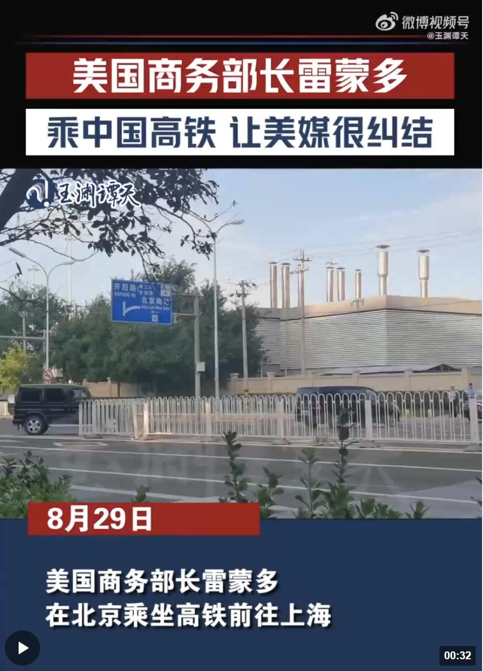 8月29日,美国商务部长雷蒙多在北京乘坐高铁前往上海。美媒在报道此事时提到一个细节——同样的距离,中国的高铁仅需四个半小时,而美国国家铁路客运公司的列车需要18到24小时。