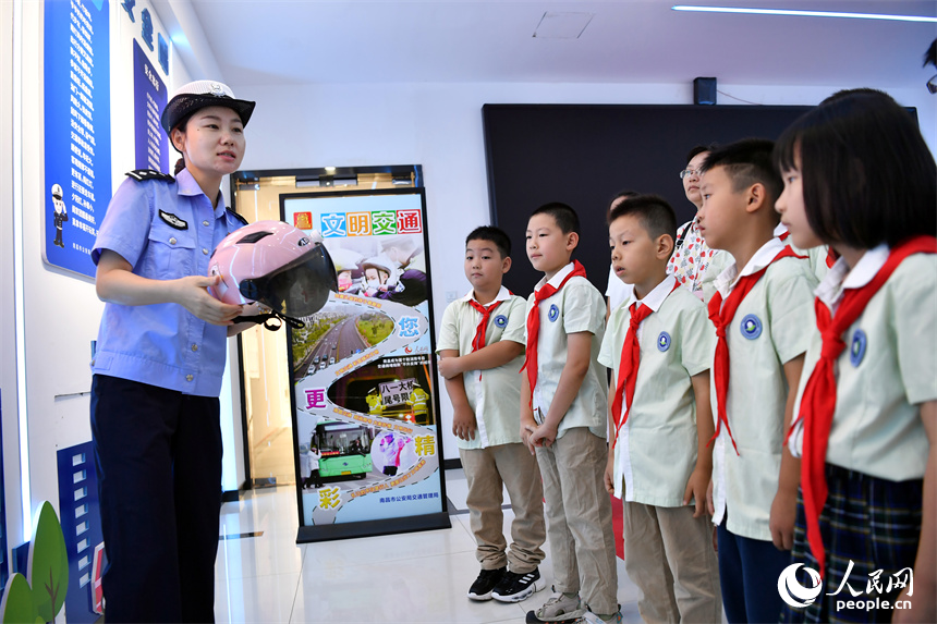 交警向学生们讲解交通违法行为带来的危害。 人民网记者 时雨摄