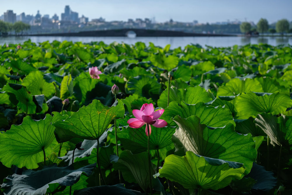 ↑杭州市余杭区瓶窑镇北湖草荡生态湿地的健身游步道。