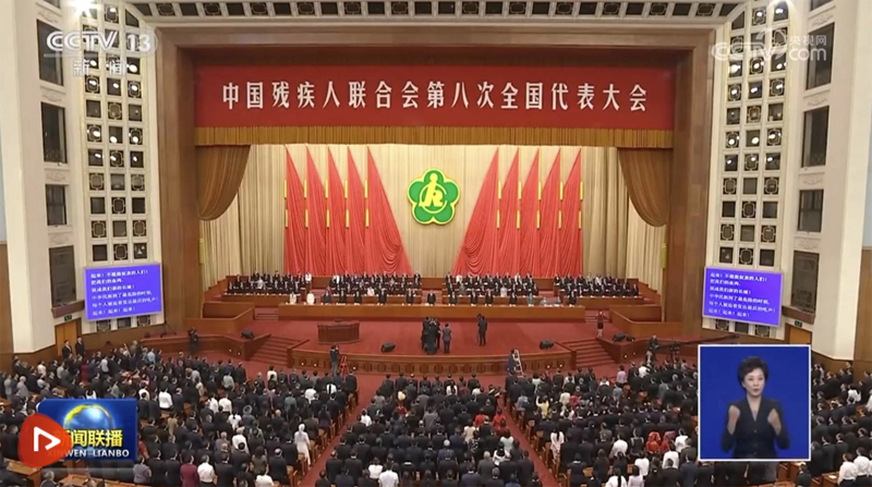 中国残疾人联合会第八次全国代表大会18日上午在北京人民大会堂开幕。习近平、李强、赵乐际、王沪宁、蔡奇等党和国家领导人到会祝贺,丁薛祥代表党中央、国务院致词。