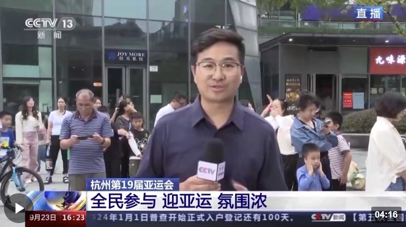 总台记者 于晨:我现在就在杭州市上城区彭埠街道杨柳郡社区的公共体育文化广场,这里已经非常热闹了,从杭州进入亚运时刻以来,给我最大的感受,可以用三个关键词来概括。