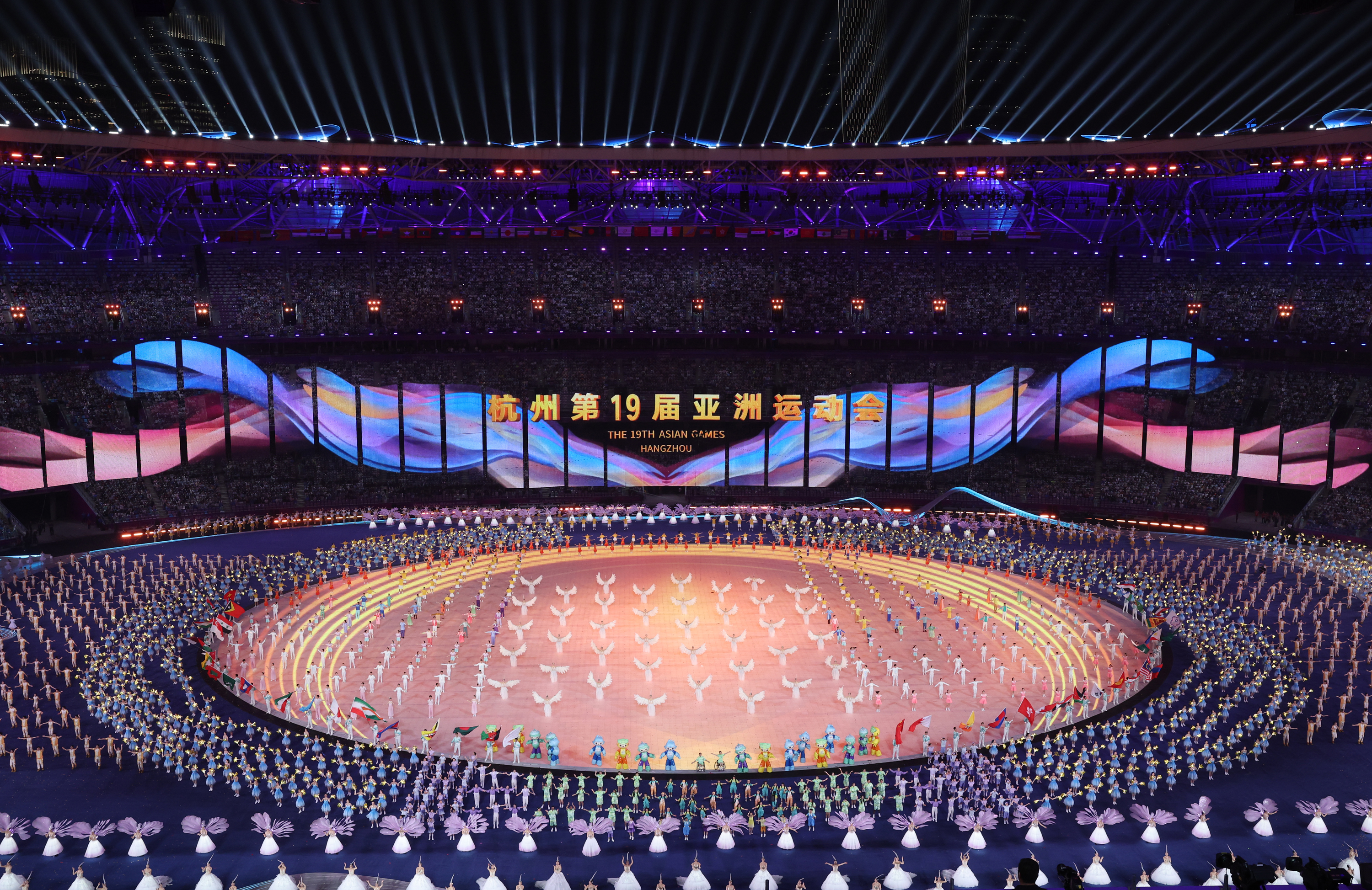 一场盛大表演令观众们惊叹不已。开幕式以《潮起亚细亚》为名,向这座城市的自然景观和时代变迁致敬。开幕式融合了3D动画、带有文化元素的增强现实等尖端技术,展示了中国丰富的文化遗产。