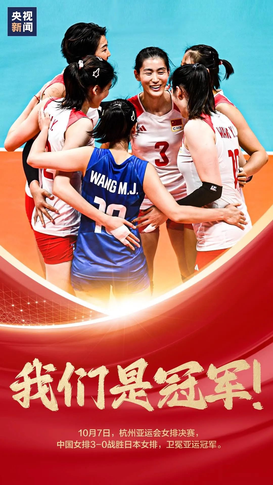 亚运第九冠!祝贺中国女排!