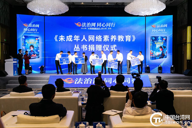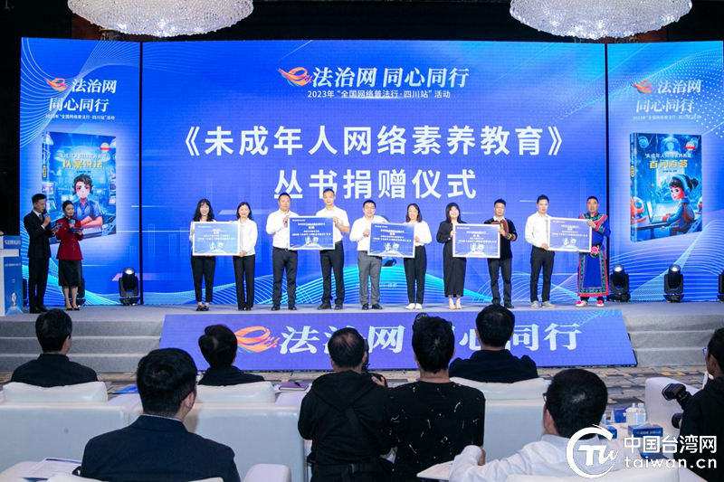 中国台湾网10月11日讯(记者 张曈)少年儿童是祖国的未来,青少年是网上学习、交流、生活最活跃的参与者、实践者,为营造风清气正的网络空间,10月11日上午,在2023年“全国网络普法行·四川站”启动仪式上,多家爱心企业向四川省中小学捐赠《未成年人网络素养教育》丛书。
