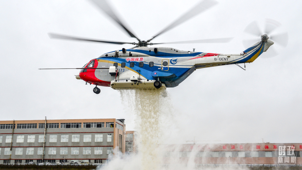 △昌飞制造的AC313直升机正在进行护林灭火演练。