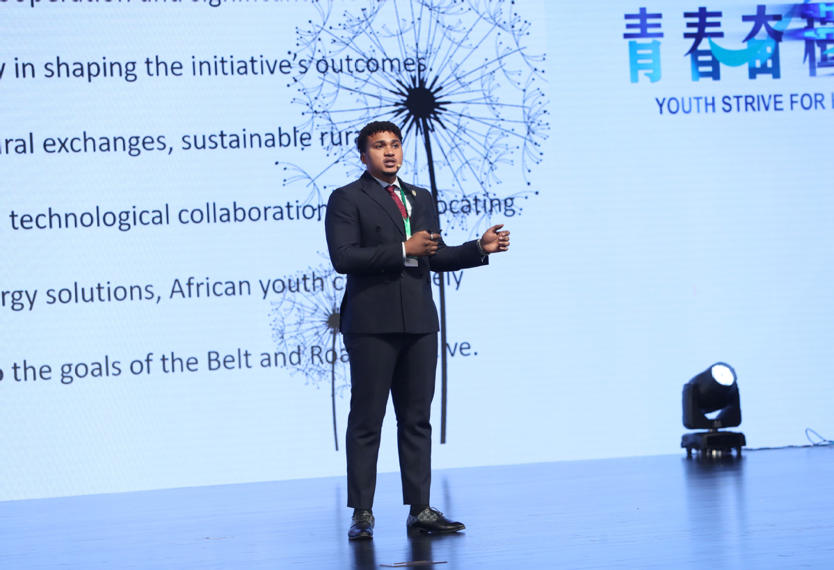 中国日报网10月14日电 李明诚来自尼日利亚,目前正在北京外国语大学攻读博士学位。10月13日,他在演讲中表示,在“一带一路”倡议下,非中两国青年在科技、乡村建设等方面的交流具有巨大潜力。他向非洲国家青年发出倡议,希望大家在加深中非青年交流中发挥更大作用。