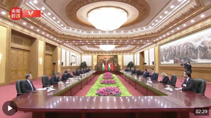 习近平指出,很高兴在北京同老朋友欧尔班总理会面。欢迎总理先生访华并出席第三届“一带一路”国际合作高峰论坛。新冠疫情期间,我们虽然没有会面,但通过两次电话,就中匈关系和两国各领域合作达成重要共识,推动中匈友好合作关系保持高水平。你长期重视对华关系,积极支持共建“一带一路”合作,为推动共建“一带一路”高质量发展作出了积极贡献,这次是你第三次出席“一带一路”国际合作高峰论坛,我对此高度赞赏。今年是我提出共建“一带一路”倡议10周年。我愿借此机会,同你和其他与会领导人一道,共话合作愿景,同绘发展蓝图,推动共建“一带一路”合作在下一个10年得到更大发展。