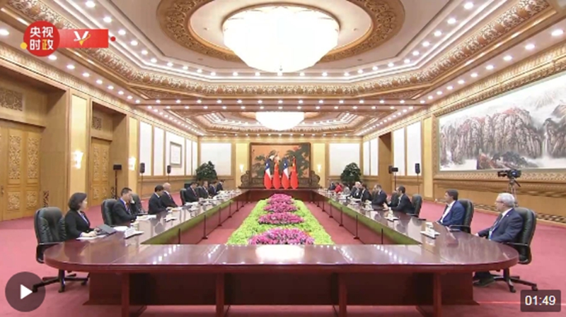 10月17日上午,国家主席习近平在人民大会堂同来华出席第三届“一带一路”国际合作高峰论坛并进行国事访问的智利总统博里奇举行会谈。