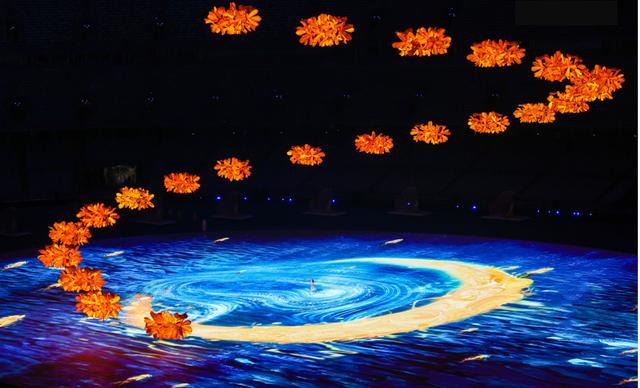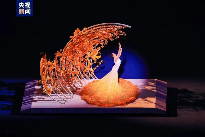 今晚的“大莲花”,处处见桂花,时时闻得到桂花香。一朵“金桂之花”到22组金桂花团,从分散到汇聚,时而形成流水,时而形成拱桥,最终将在空中形成巨大的“金桂花冠”,向每一位运动员传递“逐梦折桂”的美好寓意。